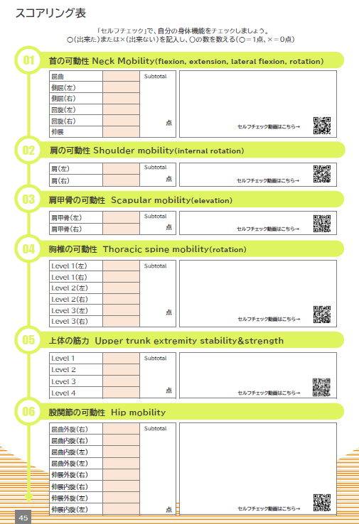 セルフチェック動画を見ながら体の状態をチェックしてください。(結果はセルフチェックシートへ)